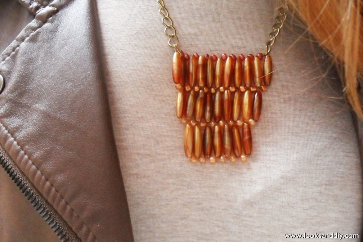 Bueno vamos al lío, hoy os muestro una de mis creaciones inspirada en una de las tendencias que más hemos visto esta primavera, el estilo safari. Quizás los tonos tierra de las cuentas me hayan hecho inspirarme en esta tendencia, pero he de confesar, que también me he visto influenciada por lo geométrico, por el estilo tribal.