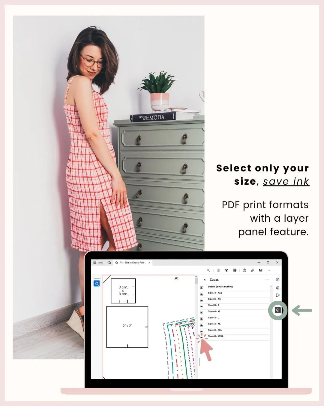 Retail empire seams can land in the wrong place. With Demeter, you can check the finished garment measurements before you sew, so the bodice length feels intentional on your body. The adjustable gathered neckline also helps you feel secure as you move—no constant tugging, no second-guessing.